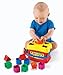 Ten bright blocks are ready for baby to drop into the open bucket or through the shape-sorting lid. Baby will love filling the bucket with blocks, dumping them out, then starting over again. Great for eye-hand coordination and other early skills. Then baby can move on to sorting and stacking and learning about identifying and matching shapes. Includes plastic shape-sorting box with take-anywhere handle and ten colorful blocks. Read more